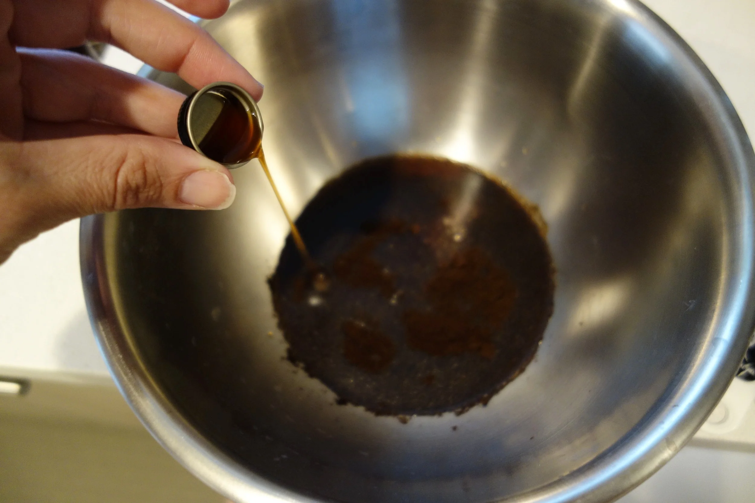 In a small bowl, combine the coffee, espresso powder, salt, and vanillas, whisking together. (Aren't you glad you have that brewed coffee all cooled and ready?) A note on the Tahitian vanilla: this is an expensive ingredient, and with Congress tinkering with our taxes, times are tight. I only include the Tahitian for its "nose-feel", as it is otherwise less flavor-forward than its Madagascar and Mexican brethren. Do not feel compelled to include it, particularly if you have a deviated septum, compromised sense of smell, or soon-to-be taxable student loan debt. If, however, you have more than a million dollars in the bank, you have no excuse and should be buying Tahitian vanilla for all your friends and family.
