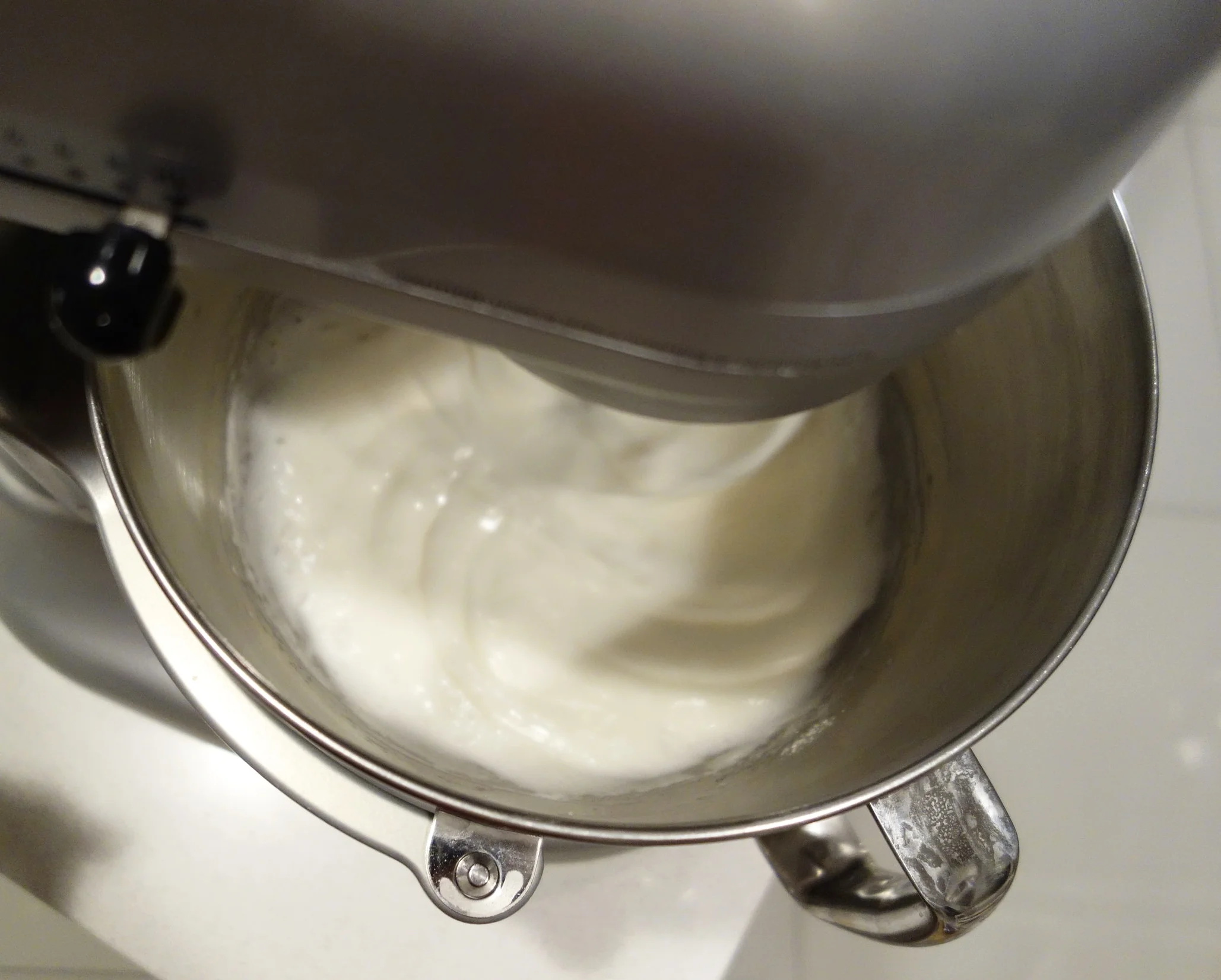 Now transfer this whole delightful mess into a clean bowl, clean the bowl and whisk attachment of your stand mixer, and remember: you're going to have a delicious dessert, holiday magic, and, hopefully, a photo op with the man in red at the end of this recipe. So it's all worth it. (Although cursing is, at this point, understandable.)