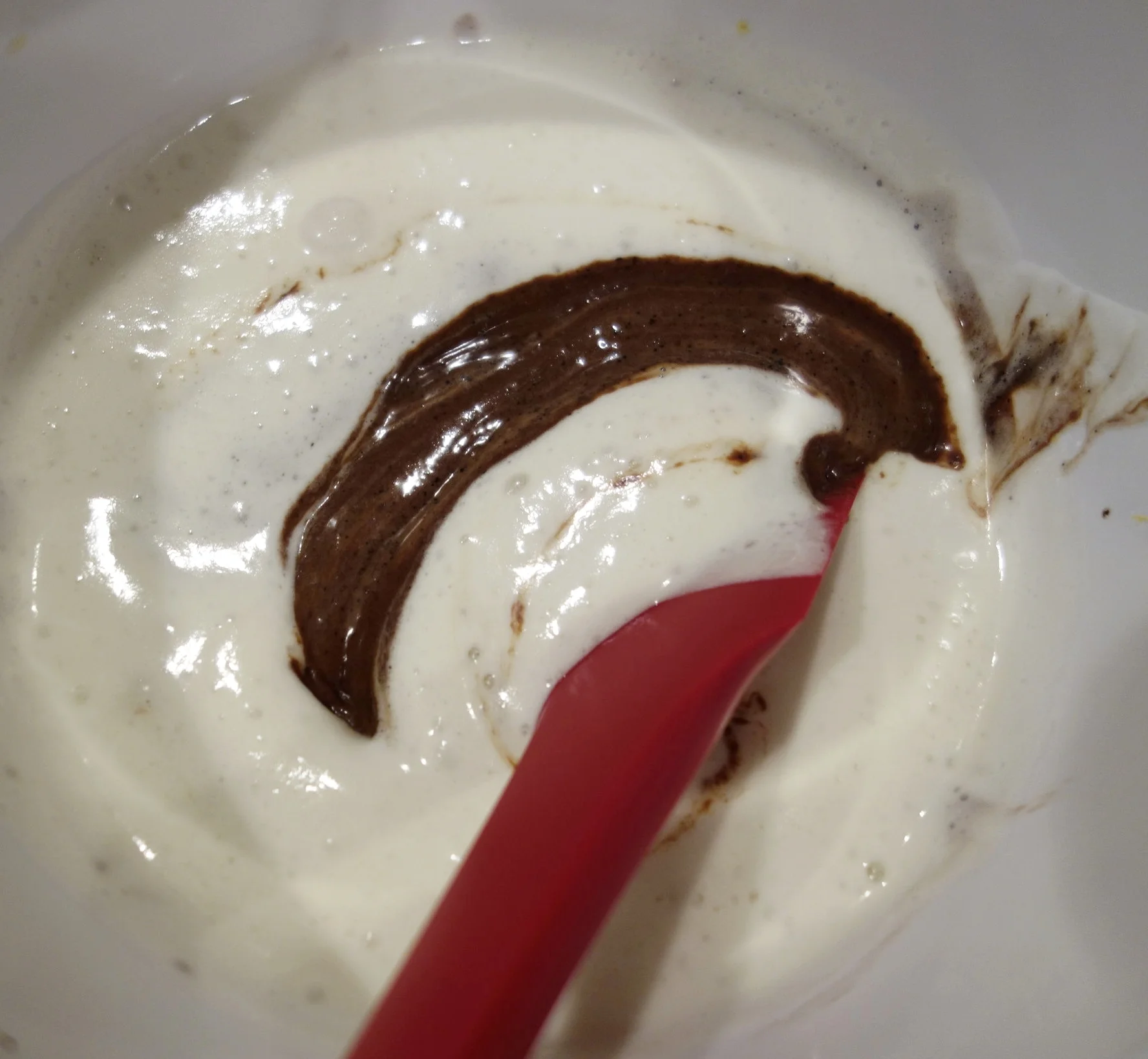 Scoop approximately one cup of the egg-white mixture into the coffee-chocolate-yolk mixture and gently fold in with a rubber spatula.