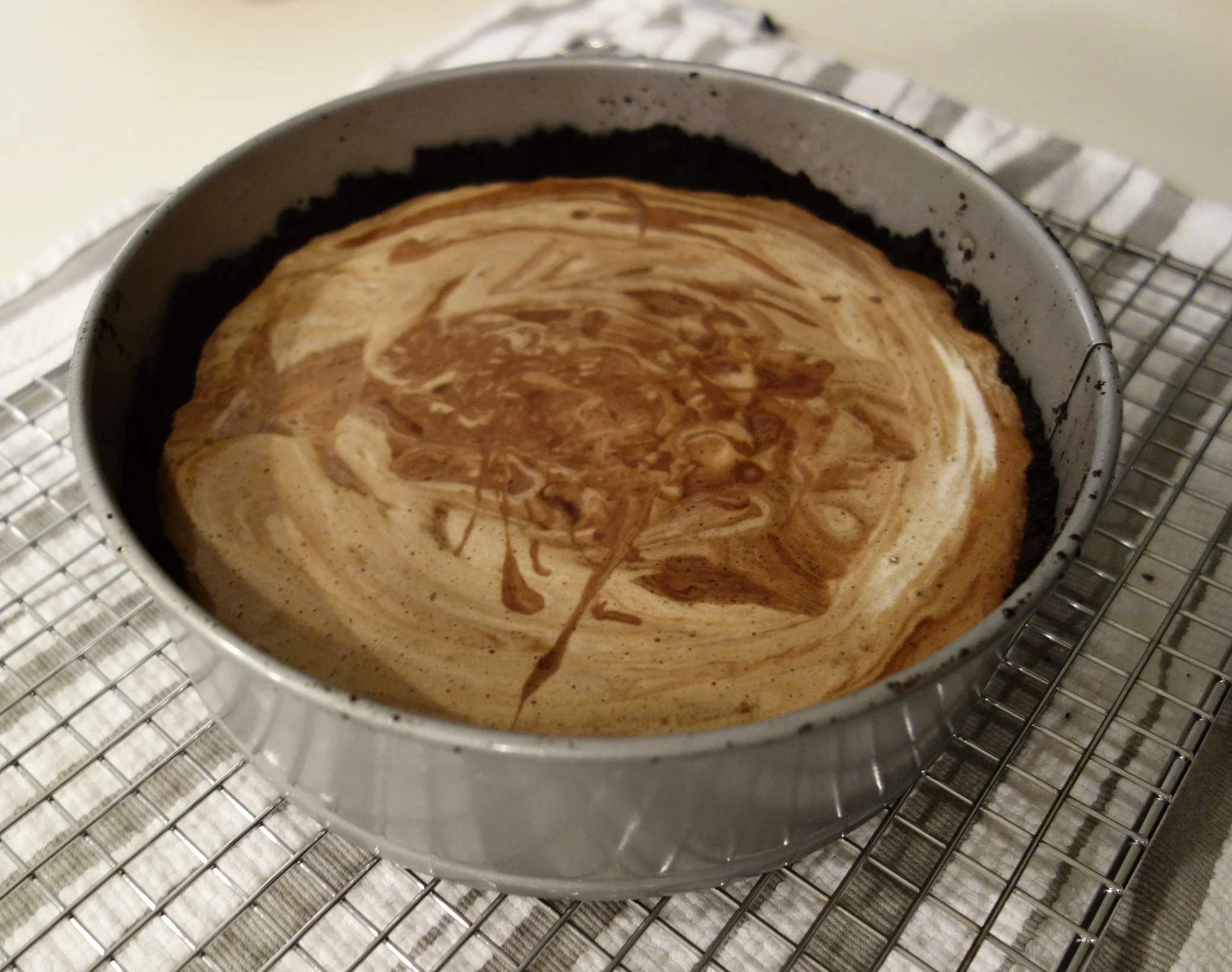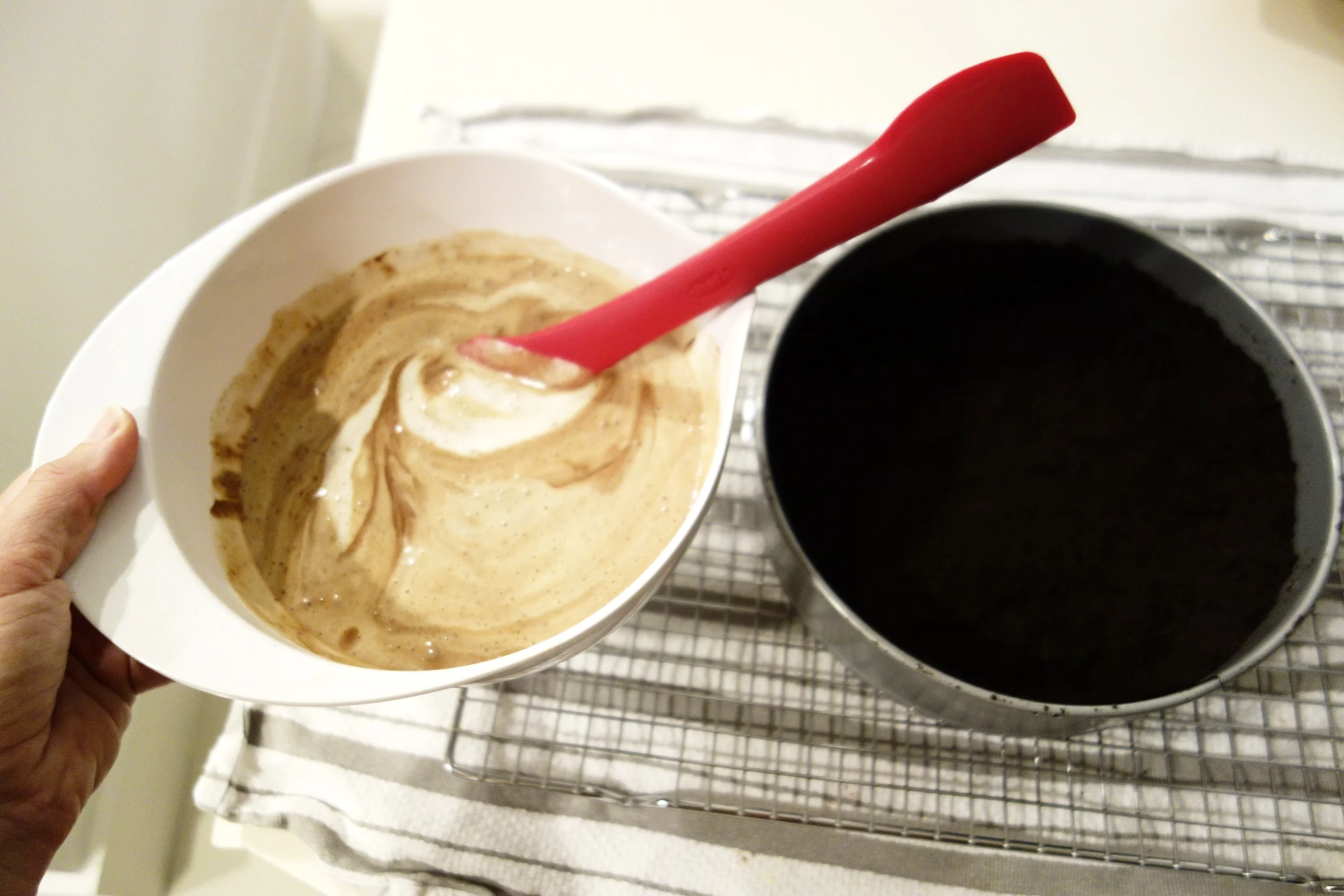 Using a measuring cup or your fingers, press the crumbs evenly into the base and up the sides of the springform pan. Chill in the freezer for 10 minutes, then bake until the crust is dry to the touch, for about 8 minutes. Cool on a wire rack.