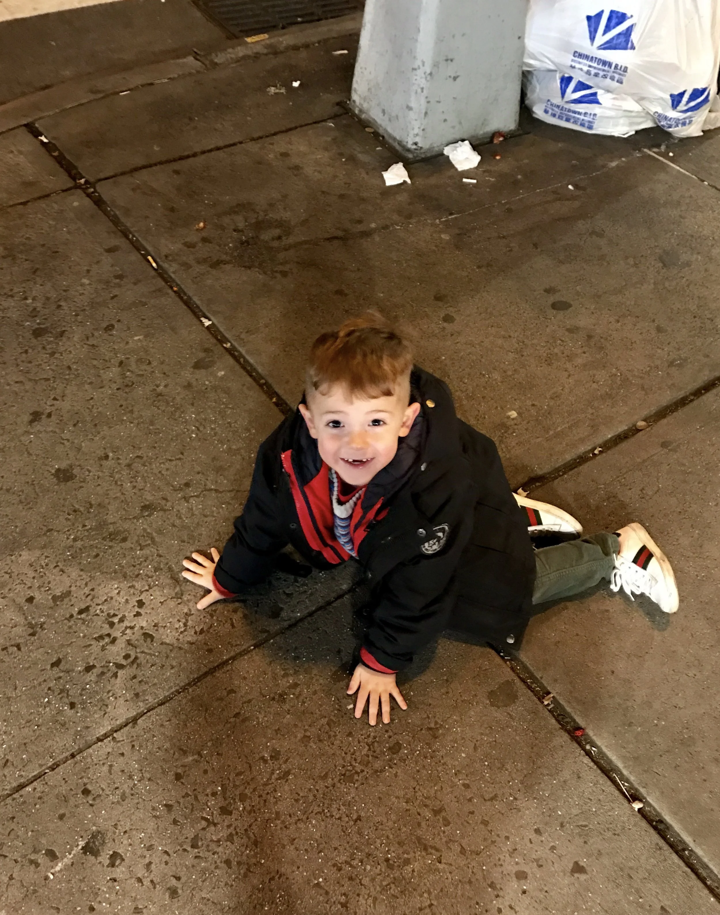 As we passed the halfway point, it occurred to me that I hadn't done anything adult-oriented the entire trip. This works perfectly for me, because I'm not really an adult. But I thought it would be good for Declan to experience a little hardship and lack--so while he napped in his stroller on Saturday, my best friend Noraan and I went shopping in Soho. She almost bought a bag in Balmain, I almost bought a bag in Louis Vuitton, and Declan almost bought the farm when he fell out of the stroller and into the street, all while remaining dead asleep. I would have taken a picture, but it seemed a little untoward to photograph your child laying face down on Prince Street.